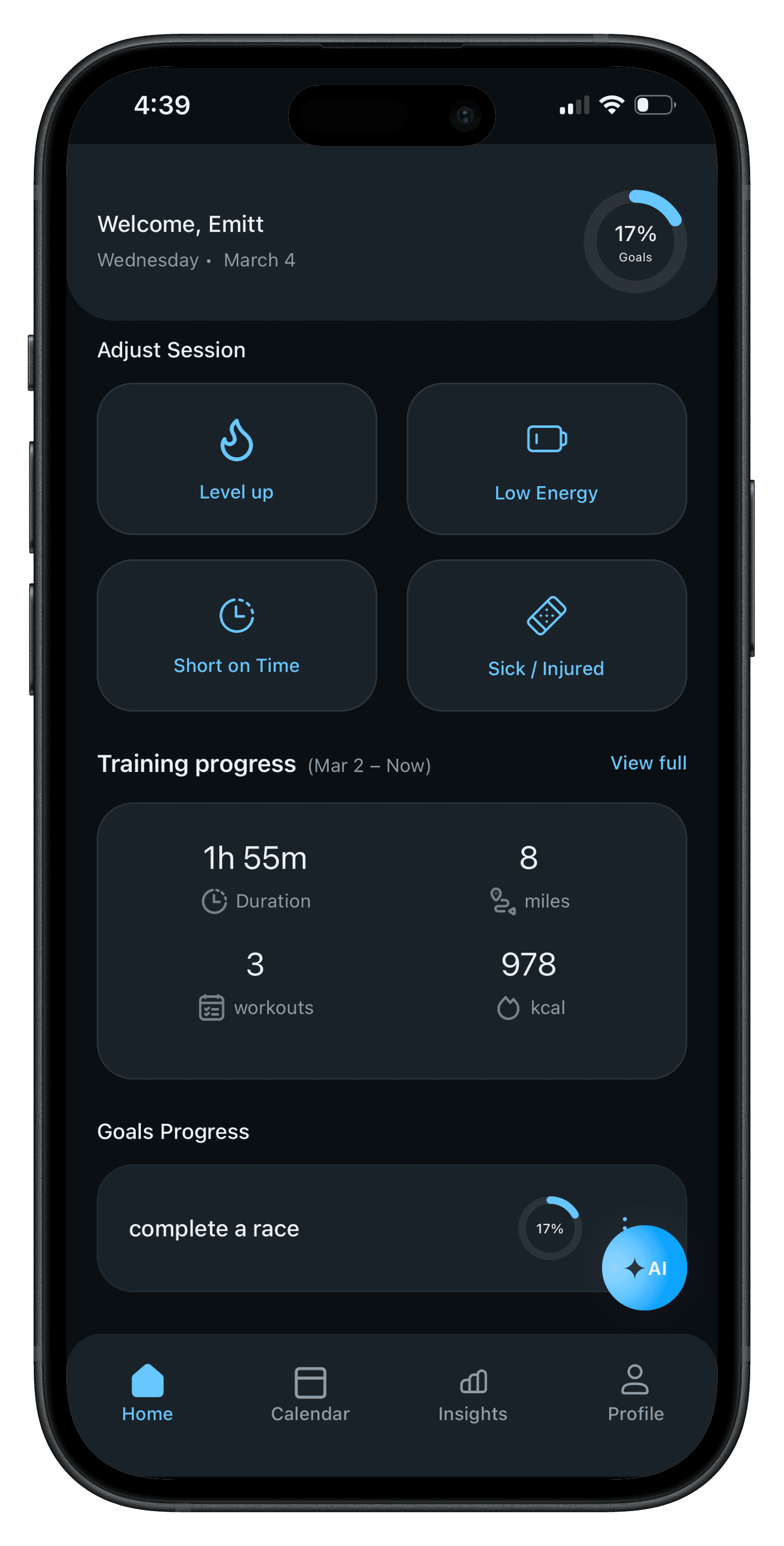 No more juggling apps, rebuilding plans, or guessing what to do next. Just intelligent training that works with your life.